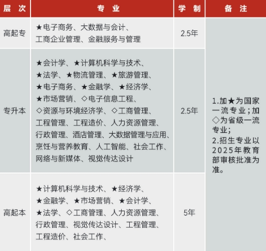 注:以上是湖北经济学院成人教育2026年拟招生专业,仅供参考,最终专业以教育考试院审核公布的专业有准。