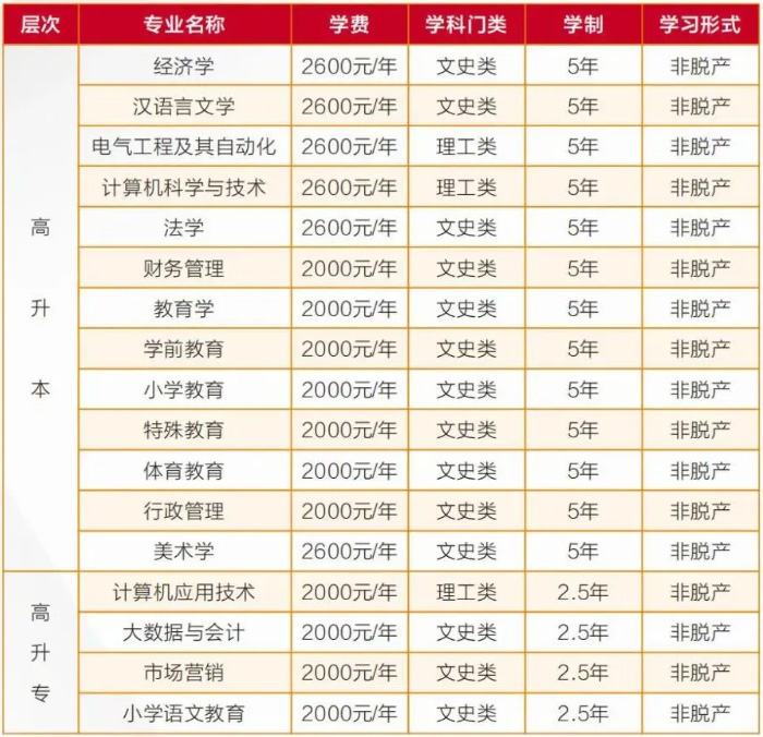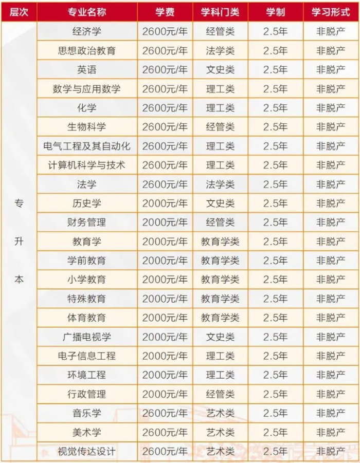 湖北师范大学成人高考2026级本科(高起本、专升本)重点专业2600元/学年、普通专业2000元/学年,专科2000元/学年。